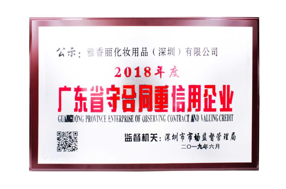 2018年度雅香麗被評(píng)為廣東省守合同重信用企業(yè)