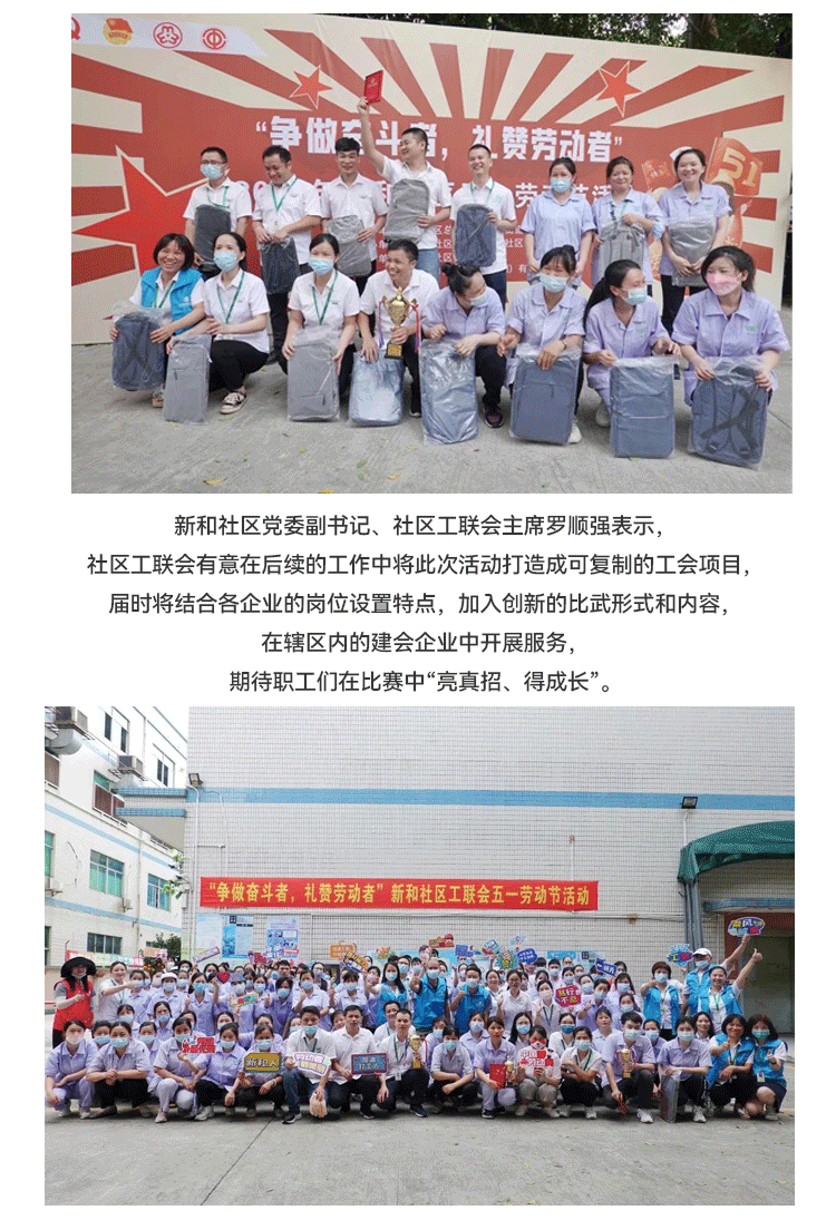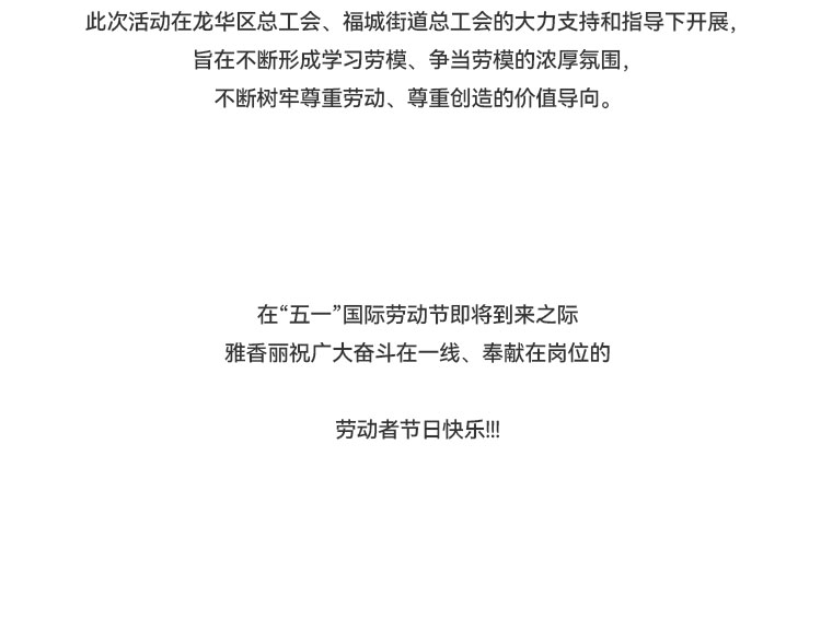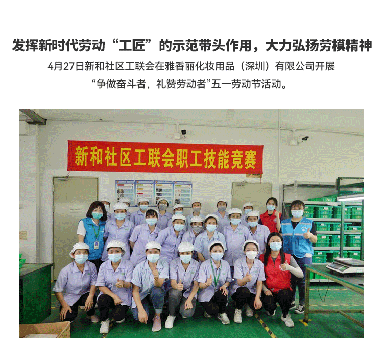 發揮新時代勞動"工匠"的示范帶頭作用,大力弘揚勞模精神;新和社區工聯會在雅香麗化妝用品(深圳)有限公司開展 “爭做奮斗者,禮贊勞動者”五一勞動節活動。