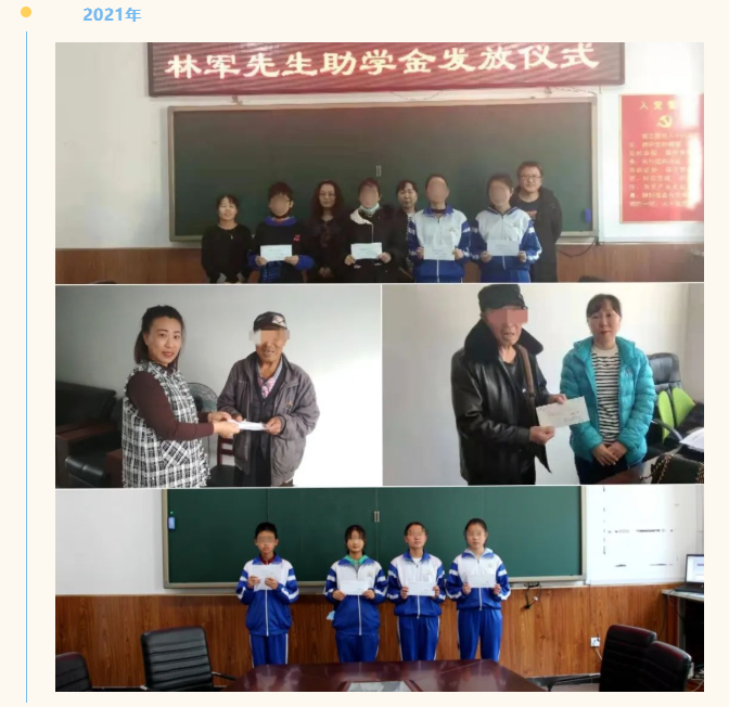 林軍扶困助學基金是鵬灣公益基金會理事、雅香麗化妝用品(深圳)有限公司董事長林軍先生為支持家鄉教育及關愛留守兒童而設立的教育助學基金。2019年,林軍扶困助學基金制定了長達六年的資助計劃,并與吉林省和龍市慈善總會合作,由其對助學金的發放進行監督與執行,在和龍市持續資助5名學生,幫助他們完成中小學階段的學業。